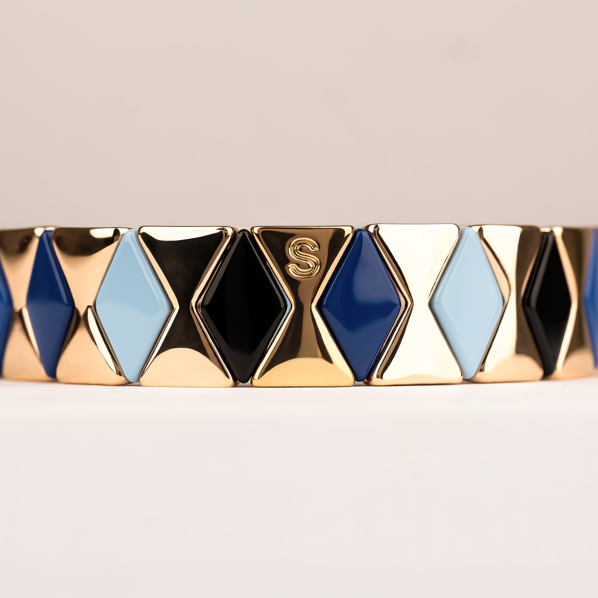 Le Bracelet Losange Azur évoque les toits, les fenêtres, les perspectives. Son tracé net s’adapte à toutes les humeurs et toutes les tenues.