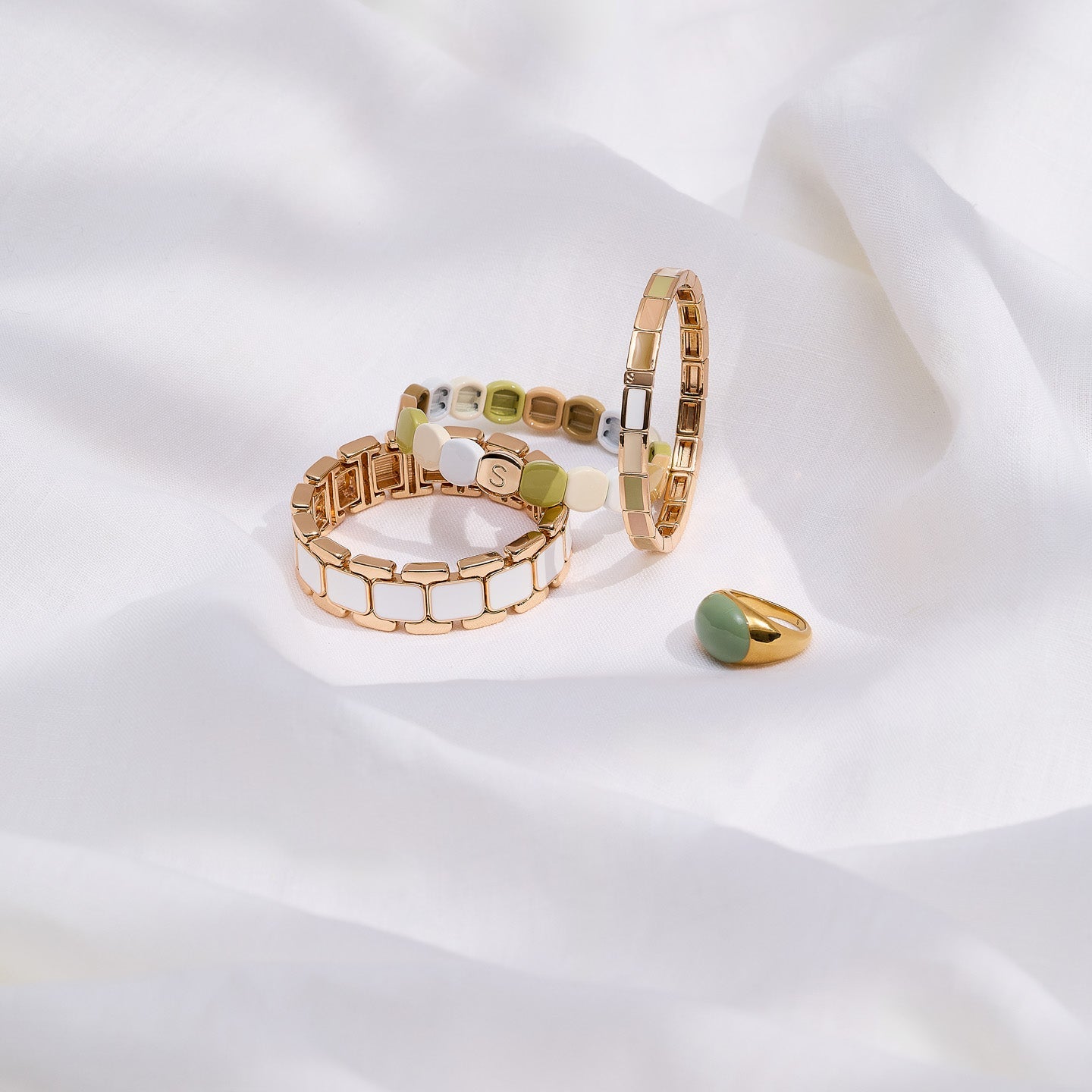 Ce thème se décline à travers 6 bracelets pour femme, à porter seuls ou à accumuler comme une manchette.