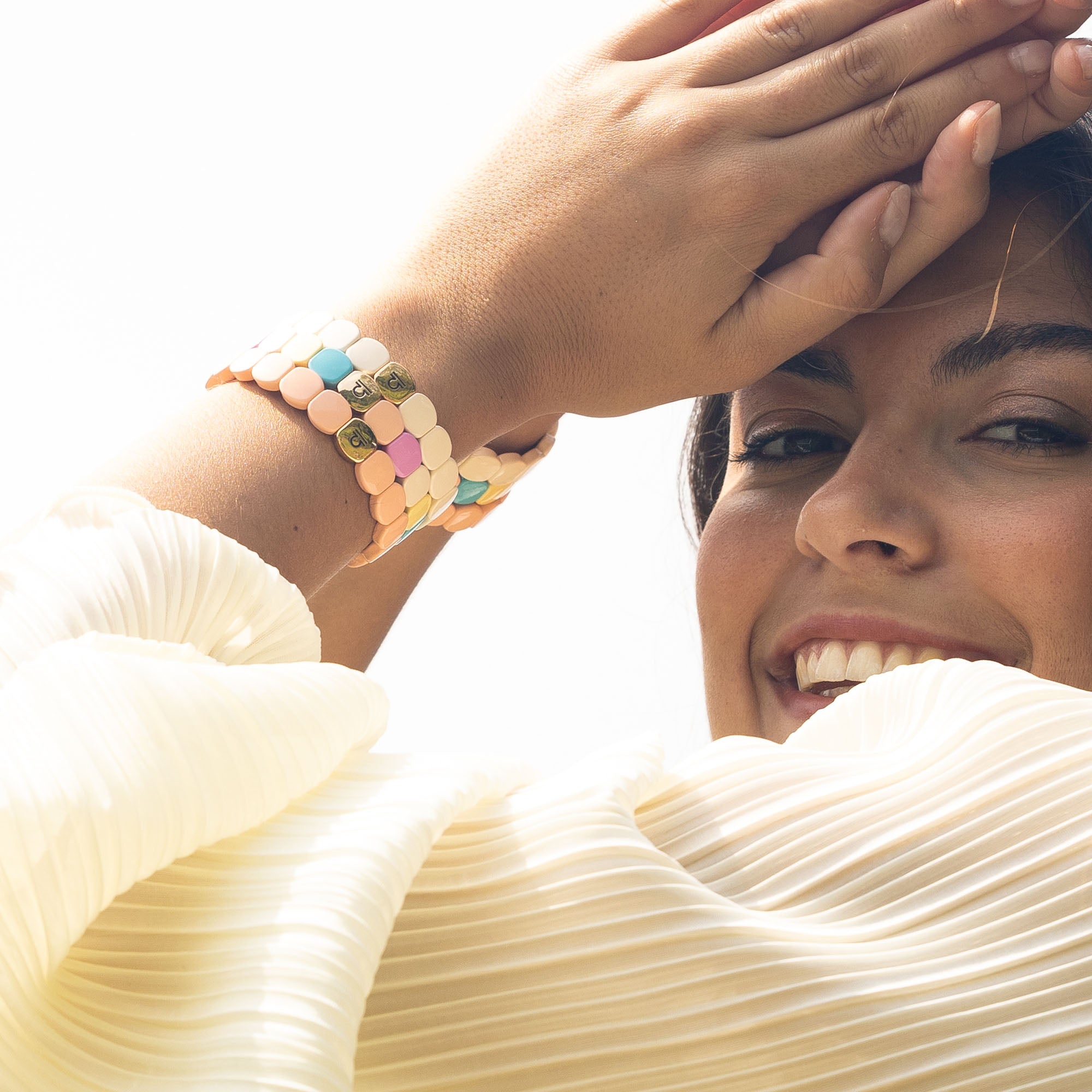 Nos bracelets se portent comme des joncs et doivent être portés de manière aérés sur le poignet.