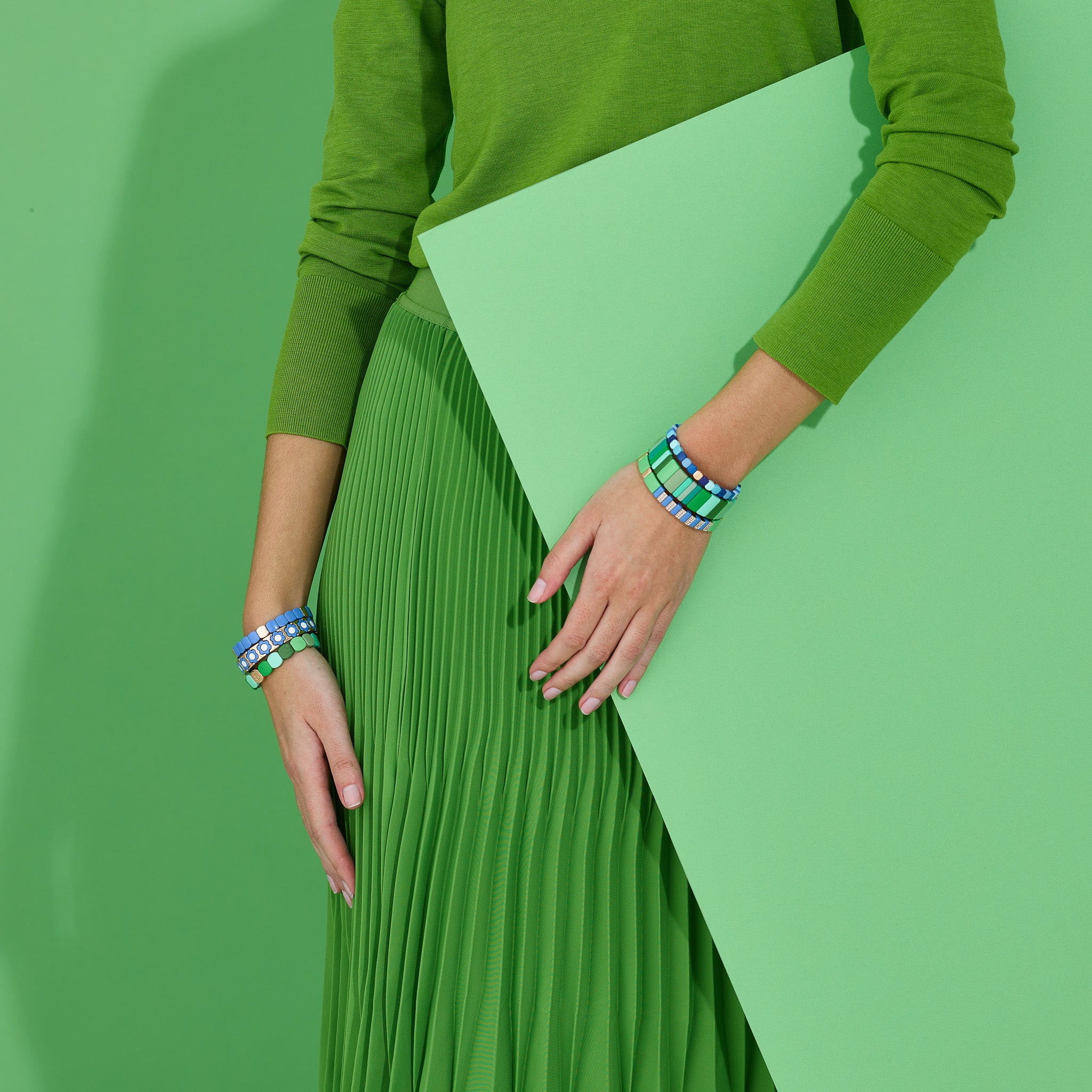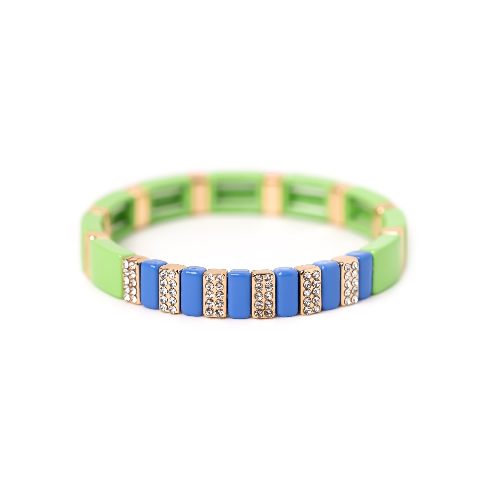 Bracelet en métal émaillé monté sur élastique avec différentes nuances de couleurs et de nombreux strass collés à la main pour un accord parfait avec tous vos looks !