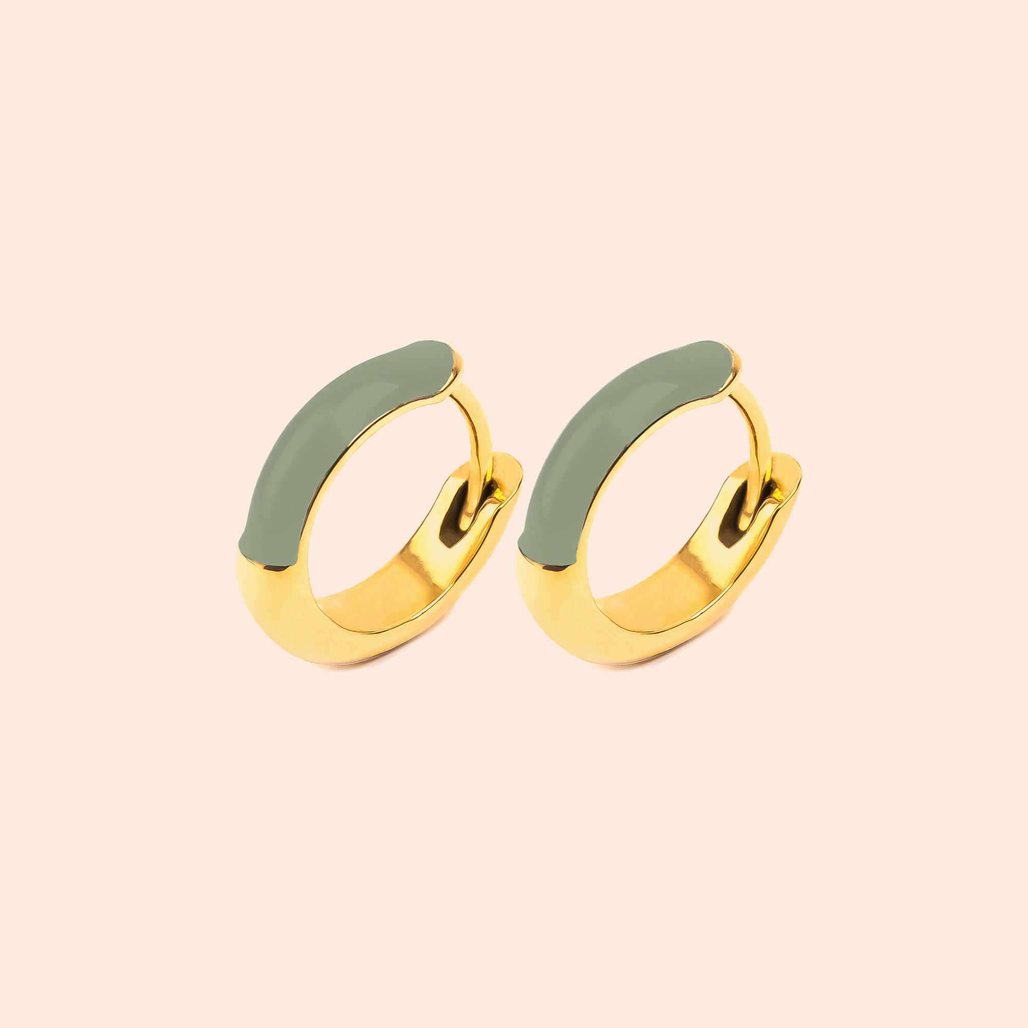 The Les Attachantes earrings are stainless steel jewelry. They are characterized by a thick round hoop with a colored upper part and a gold lower part.