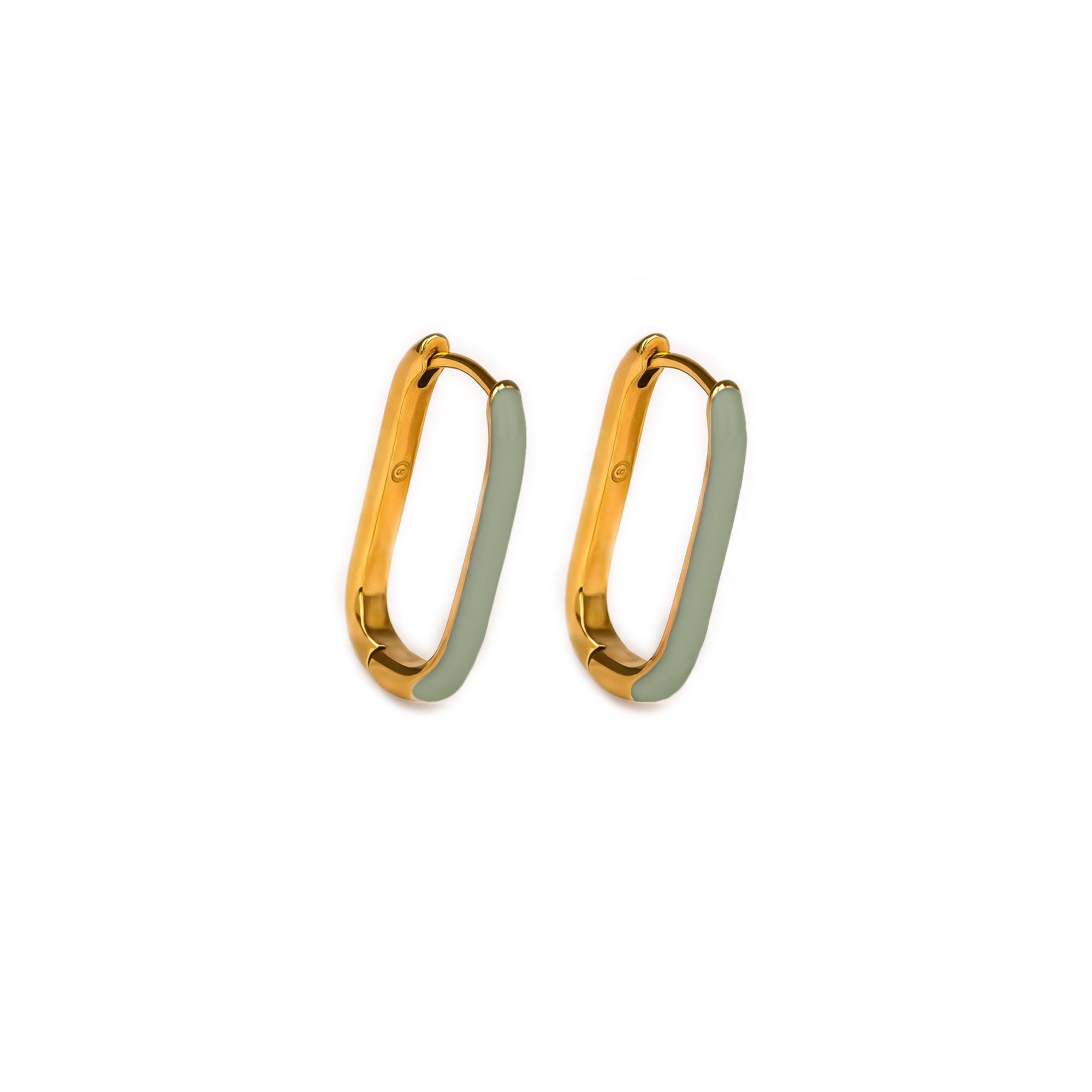 The Les Gracieuses earrings are stainless steel jewelry. They are characterized by a thin oval ring combining gold and color in a clean design.