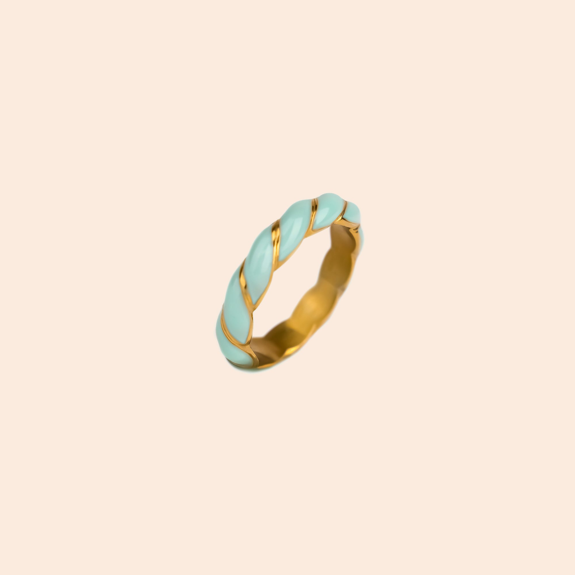 The Mon Souffle ring is a stainless steel jewel with a gold finish enhanced by a colorful twisted line, ideal worn alone or stacked.
