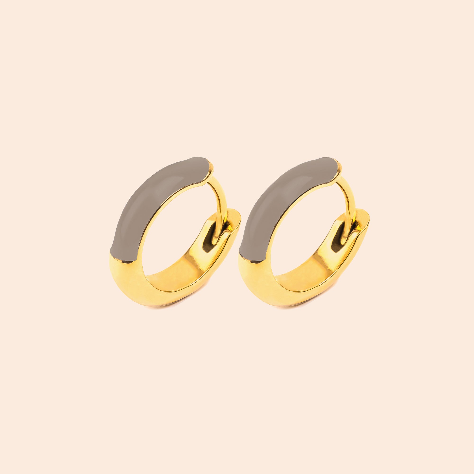 The Les Attachantes earrings are stainless steel jewelry. They are characterized by a thick round hoop with a colored upper part and a gold lower part.