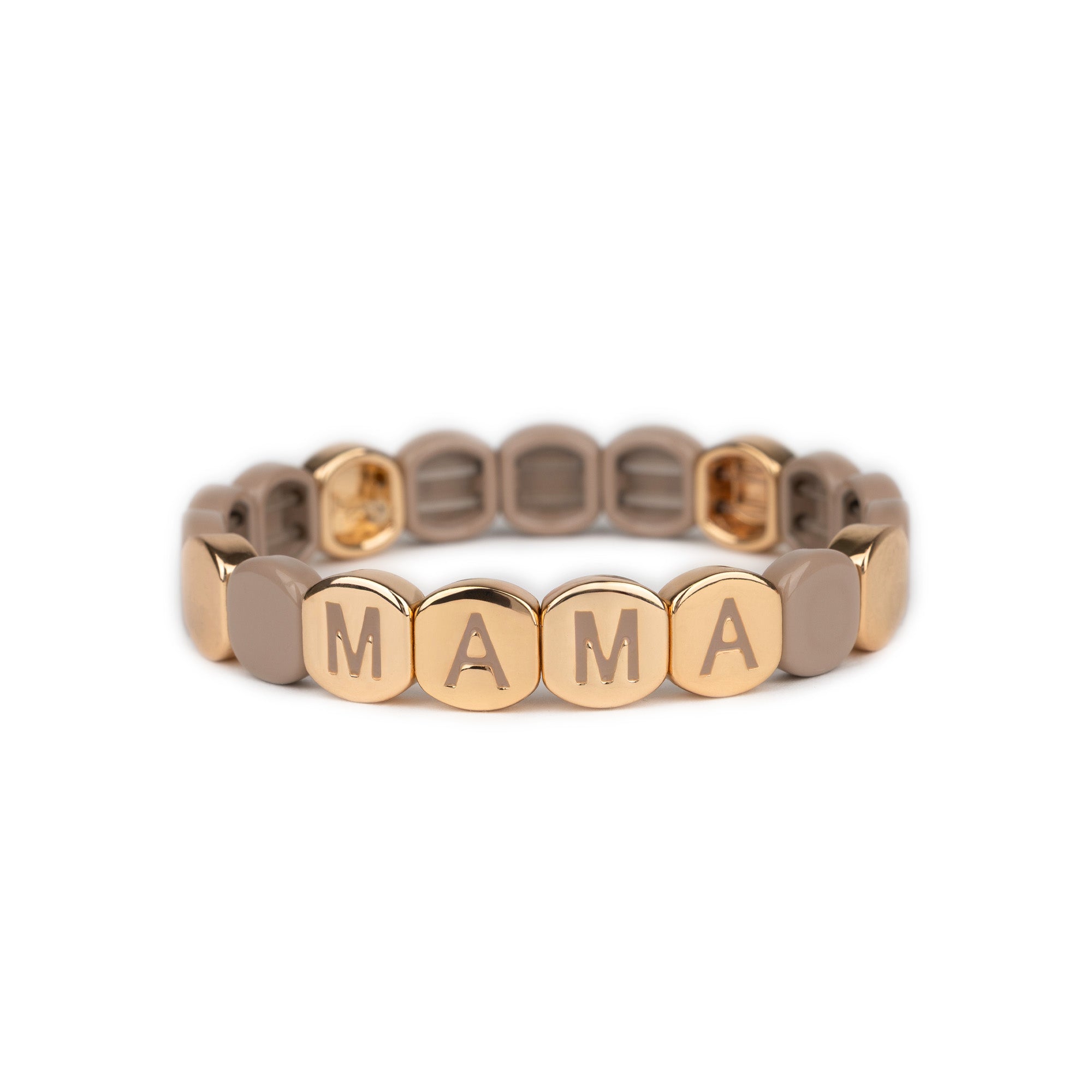 Le bracelet Colorful Mama Moccha associe des perles colorées lumineuses à quatre perles dorées formant le mot MAMA comme un message doux à porter au quotidien.