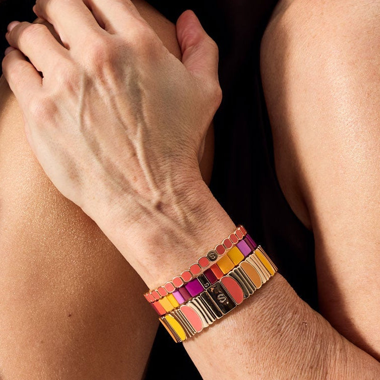 Le bracelet Colormind Mini est un bijou en métal émaillé. Il se caractérise par ses petites perles arrondies et colorées délicatement serties d’un contour doré.