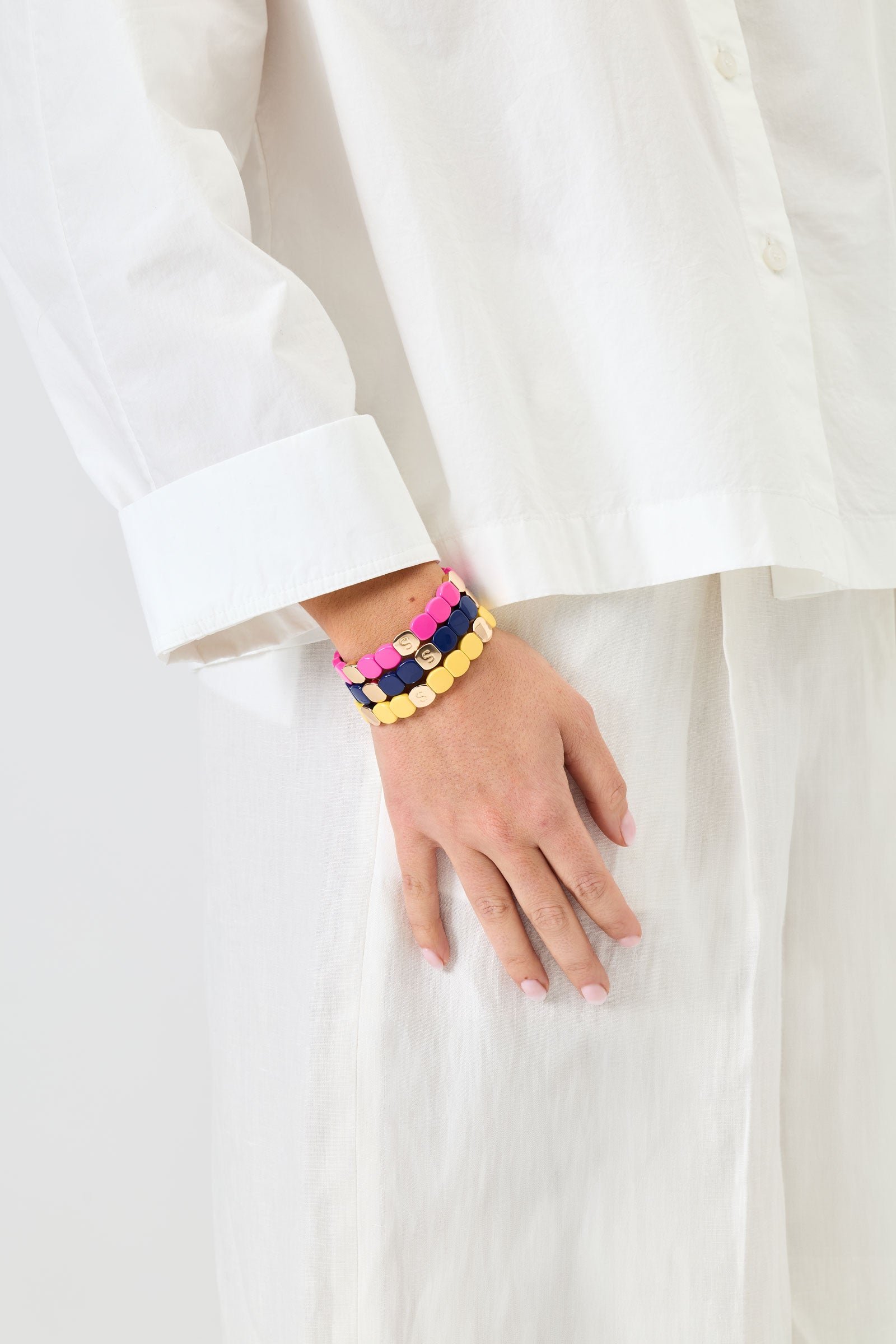 Nos bijoux se portent comme des joncs, seuls ou accumulés façon manchette. Nos bracelets sont désormais montés sur un élastique unibrin : plus résistant, plus confortable, et conçu pour durer.
