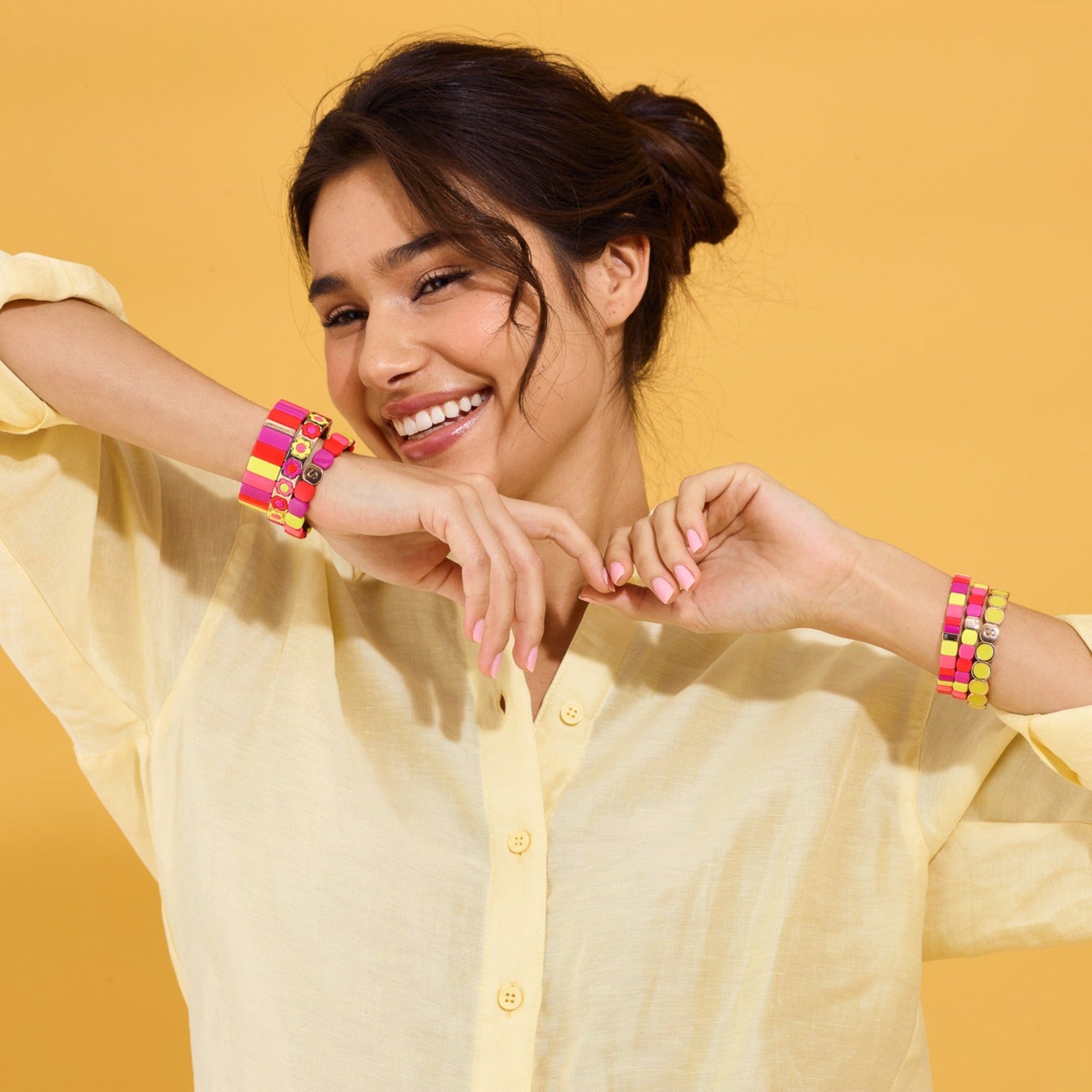 La marque développe ses propres Pantone « déjà plus de 200 couleurs » et ses formes qui s’assemblent toutes ensemble. À vous de composer votre propre manchette.