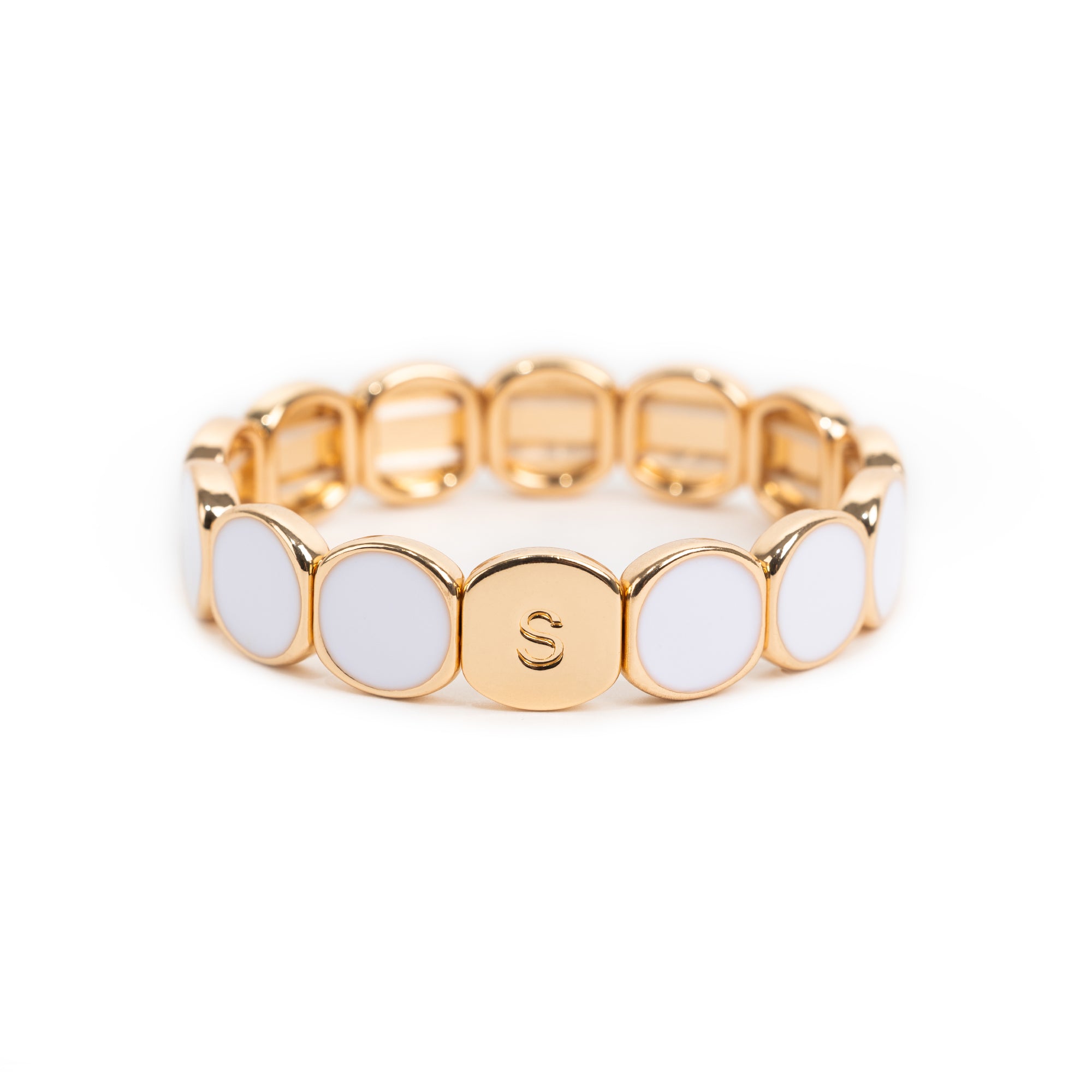 Matières : métal émaillé monté sur élastique unibrin